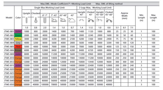 • Versatile Lifting Methods: Accommodates various lifting configurations including basket, choke, and vertical hitches, providing maximum flexibility for different load types and lifting scenarios.